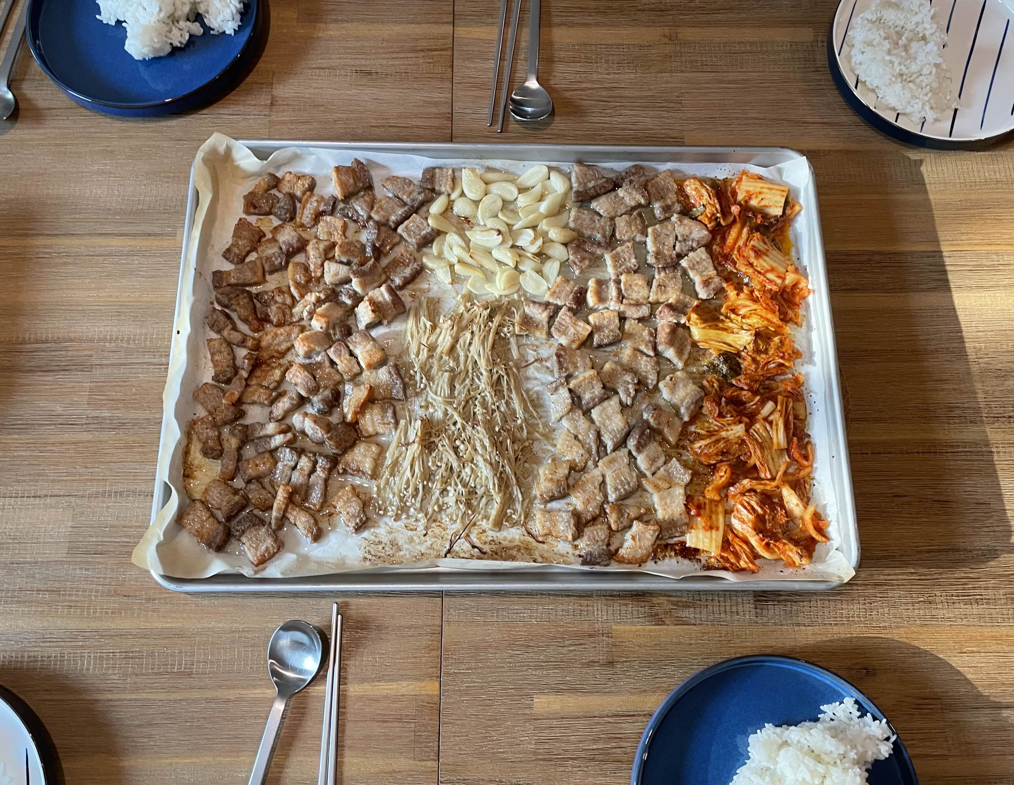 함께 연습문제를 풀다 보니 아이의 표정이 조금씩 누그러졌다. ‘조금은 자신감을 되찾았나?’ 싶을 즈음, 남편이 저녁이 준비됐다고 불렀다. 아빠가 준비한 삼겹살로 맛있게 저녁을 먹고, 아이들과 식탁을 정리한 뒤 설거지거리를 식기세척기에 넣었다. 그러자 작은아이가 디저트로 크레페를 만들고 싶다며 다시 도와달라고 했다. 오늘 가족에 대한 의무는 다 했다고 생각했는데, 아직 아니군. 사실 저녁 먹고 이번 주 박사 수업 reading assignment를 부지런히 해야 했는데, 어쩌겠는가. 적어도 지금 느낌은 내 공부보다는 아이와 크레페 만드는 일이 더 중요하다는 판단이 섰다.
